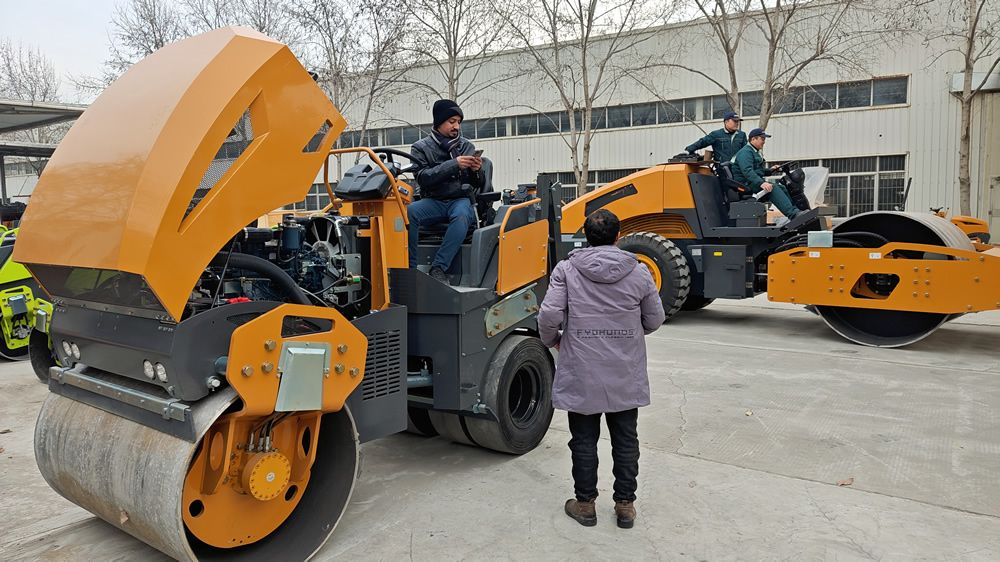 12月24日,某國外客戶2人來我廠參觀考察,在工作人員的陪同下,參觀了我廠生產車間與展廳并試駕小型壓路機,詳細向業(yè)務人員了解各個型號的配置與參數,對我廠生產的壓路機、移動照明車,滑移裝載機等產品表現(xiàn)出濃厚興趣,初步達成合作意向